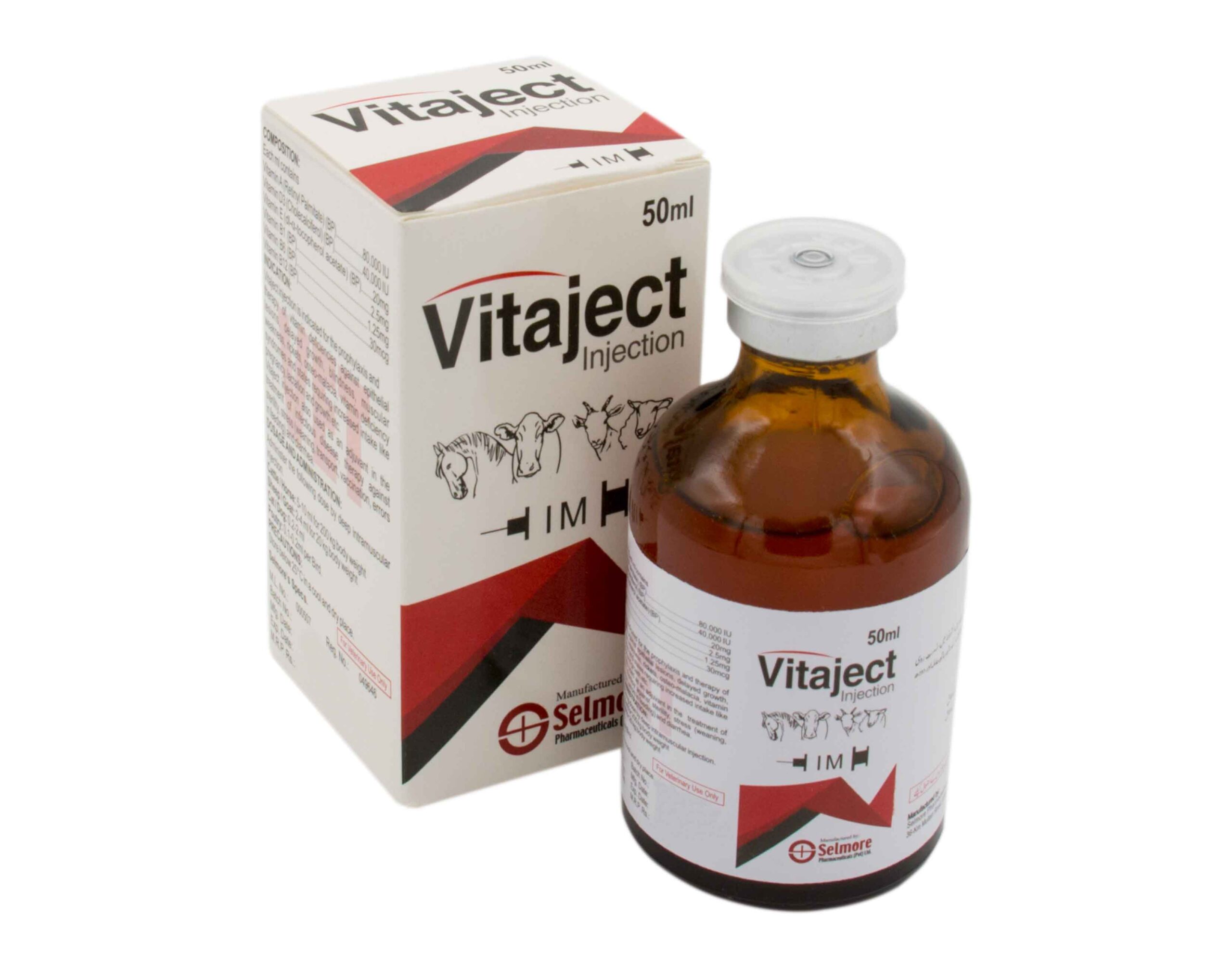 Vitaject injection also used as an adjuvant in the treatment of infectious disease, therapy against sterility, stress (weaning, transport, vaccination, errors in feeding) and diarrhea.
